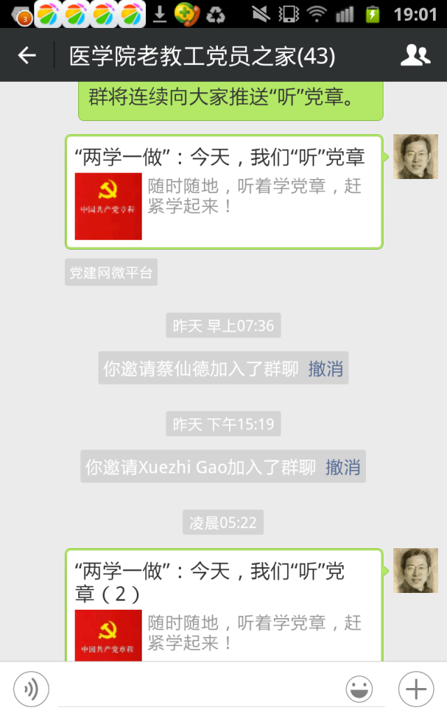 “两学一做”,基础在学。根据退休党支部的实际,部分党员提出利用移动新媒体的优势,组建退休党支部“微党员之家”的倡议得到与会人员一致同意。在原有退协群聊的基础上,当即另外组建了“太阳成集团tyc9728老教工党员之家”微信群,由专人负责,坚持经常推送有关移动新媒体客户端“两学一做”学习教育的专题学习资料及本支部党内活动的有关通知和图文报道。