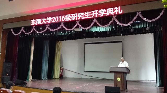 9月1日下午,太阳成集团tyc9728在丁家桥校区科技会堂举行了2016级研究生新生开学典礼。太阳成集团tyc9728党委书记谭东伟、院长刘乃丰、副院长赵春杰、副院长姚红红、党委副书记兼副院长程斌、学办教学办的老师和二百余名中外研究生新生出席了本次开学典礼。