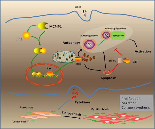 太阳成官网巢杰教授的论文“Macrophage-derived MCPIP1 mediates silica-induced pulmonary fibrosis via autophagy”于2016年10月25日被著名期刊Particle and Fibre Toxicology发表。该期刊是毒理学研究领域排名第一的国际权威刊物(5年影响因子为9.62)。本研究探讨了MCPIP1调控巨噬细胞自噬在矽肺纤维化中的功能。矽肺是由于长期吸入游离晶体二氧化硅粉尘引起的肺纤维化疾病,一旦发生,呈进行性发展。在矽肺发展过程中,纤维组织的过度修复造成肺组织结构紊乱,从而取代正常肺组织结构;实质为肺泡损伤、胶原沉积,最终导致肺纤维化。目前矽尘引起肺纤维化的具体机制还不清楚,但作为与矽尘接触的第一道防线的肺泡巨噬细胞被认为在矽肺的发生发展中起着重要的作用。MCPIP1是一种锌指蛋白,作为炎性因子MCP-1重要的下游分子,在成纤维细胞的增殖和迁移中发挥着重要作用。本研究发现在单核细胞诱导的巨噬细胞中,MCPIP1能够通过结合p53蛋白,诱导细胞自噬反应的发生;过度的自噬引起了巨噬细胞的活化和凋亡,从而促进纤维化因子如MCP-1、TNF-α和TGF-β的分泌。有趣的是,在SiO2处理下,MCPIP1诱导的自噬促进人肺成纤维细胞的增殖和迁移。该研究证实MCPIP1介导的自噬在SiO2诱导的肺纤维中发挥着至关重要的作用。