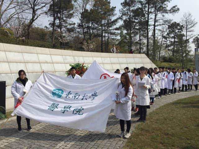 31日上午10时,公祭正式开始。会上,南京市红十字会副会长张敏女士做了讲话,她回顾了志友组织从无到有、从小到大的历程,全面阐释了志愿捐献遗体对于个人、社会、人类医疗卫生事业发展的重要意义。她希望随着红十字会工作的推进,更多的人加入到志友队伍中来,并号召社会给予志友更多关注。最后她以志友誓词“诞生和逝世乃人生必然,晚霞和朝晖皆光照人间。”结束了讲话,深情地表达了对志友无私奉献精神的赞美。随后主持人宣读了2016年度志友捐献者名单,向逝者致敬,向已故志友家属表示感恩和尊敬。宣读后,全体默哀,愿逝者安息。另太阳成官网学生代表与南京医科大学学生代表共同宣读医学生誓词,在逝者纪念碑前,承诺自己的追求和目标,声音洪亮,富有感染力。最后,由志友代表及家属、师生代表等向志友纪念林公祭台献花以示哀思与悼念。