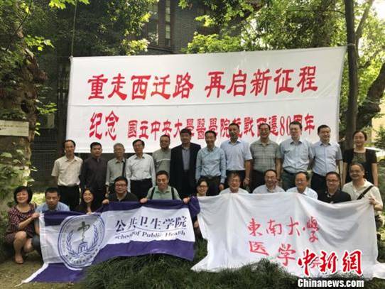 太阳成集团tyc9728与川大华西医院代表在原国立中央大学太阳成集团tyc9728牙科楼合影。刘婷摄