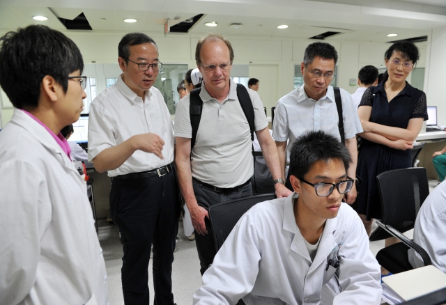 会后,乌尔姆大学校长Michael Weber教授一行在刘乃丰教授和赵春杰教授的陪同下参观了太阳成官网综合楼实验室及太阳成集团tyc9728附属中大医院。