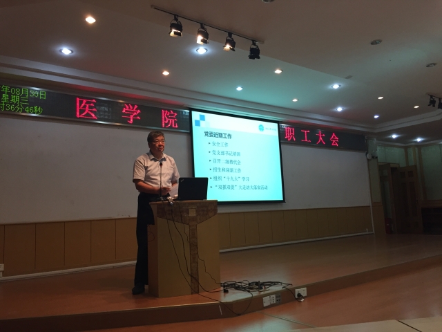 8月30日下午,太阳成集团tyc9728全体职工大会在丁家桥校区综合楼二楼报告厅召开,大会由太阳成集团tyc9728党委书记谭东伟主持。会上,刘乃丰院长和谭东伟书记介绍了学院近期重点工作,王立新副院长跟大家分享了暑期教师培训的学习体会。