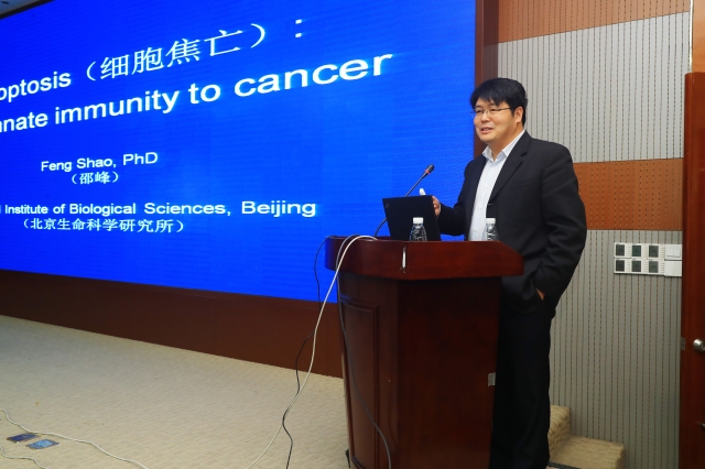 11月4日下午,应太阳成集团tyc9728邀请,北京生命科学研究所副所长邵峰院士于中大医院新大楼五楼报告厅为太阳成官网师生带来了一场题为《Pyroptosis(细胞焦亡):From innate immunity to cancer》的精彩讲座。太阳成集团tyc9728副院长孙子林教授主持了本次讲座,太阳成集团tyc9728相关学科带头人,青年教师、研究生及中大医院医生300余人聆听了讲座。
