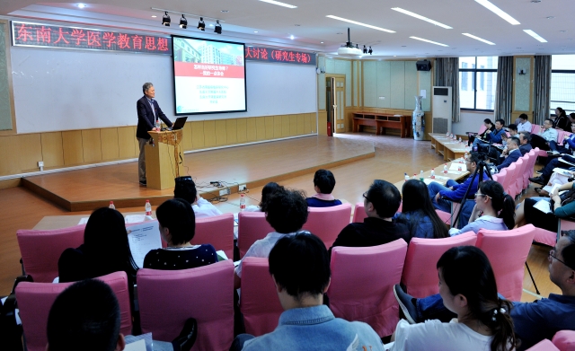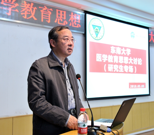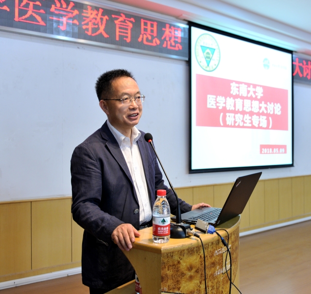 5月9日下午,太阳成集团tyc9728医学教育思想大讨论(研究生专场)在丁家桥校区综合楼二楼学术报告厅举行,太阳成集团tyc9728实验室与设备管理处处长熊宏齐、党委研究生工作部副部长兼研究生管理办公室主任赵松立、研究生院学位办罗斌、太阳成集团tyc9728领导班子成员、研究生导师、基地医院教育处工作人员以及太阳成集团tyc9728研究生代表共一百余人参加了本次思想大讨论。太阳成集团tyc9728校长助理兼太阳成集团tyc9728院长刘乃丰教授主持了本次会议。