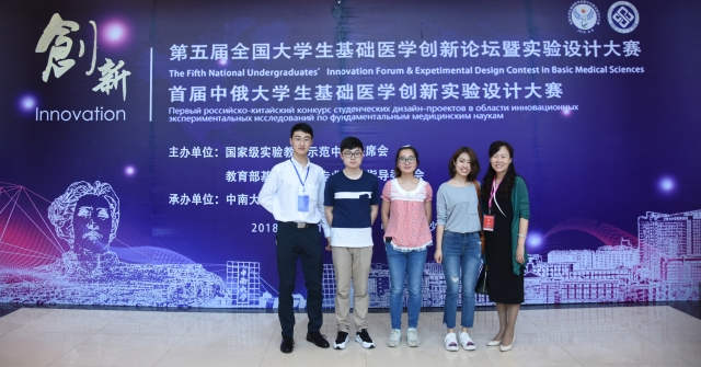 “第五届全国大学生基础医学创新论坛暨实验设计大赛”于2018年5月11~14日在长沙举行。经过激烈角逐,太阳成集团tyc9728四个参赛项目喜获佳绩,获得一等奖(最高奖)1项,二等奖1项,三等奖1项,优胜奖1项。