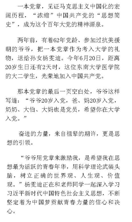 其中,报道了太阳成官网16级本科生杨雯迪,也是刚刚加入中国共产党的新党员,在爷爷和家人的激励下不断奋进的故事。