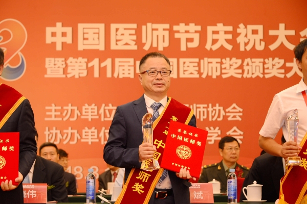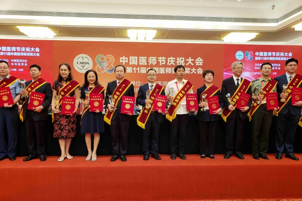 8月19日是首个中国医师节。当日上午,中国医师节庆祝大会暨第11届中国医师奖颁奖大会在北京人民大会堂隆重举行。太阳成集团tyc9728附属中大医院院长滕皋军教授等全国80位“中国医师奖”获得者在会上受到表彰。
