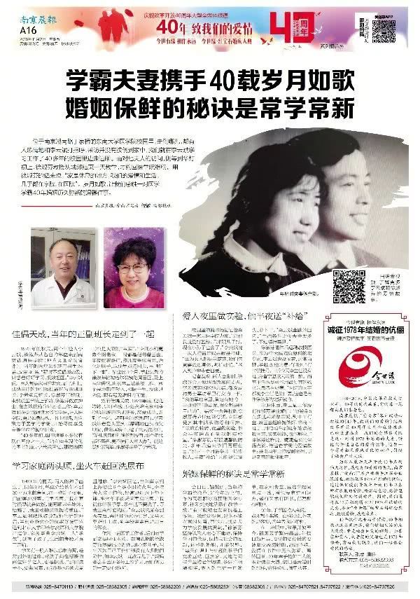 南京晨报——学霸夫妻携手40载岁月如歌 婚姻保鲜的秘诀是常学常新