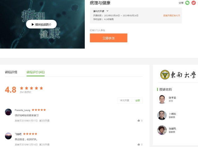 为贯彻和推进《“健康中国2030”规划纲要》、《教育信息化十年发展规划(2011-2020年)》,该课程团队在陈平圣教授的带领之下,多年来积极开展病理学教学资源建设和网络教学改革。《病理与健康》立足于“全民健康,对接深化医改和大健康”的国家发展战略,以培养一流医学人才和普及大众健康知识为根本目标,以病理学基础知识为依托,将人体病变器官标本讲解穿插于教学之中,精心录制了七十余讲在线视频,辅以简洁的临床病例分析,组织学生完成在线测验、考试、讨论和答疑,充分体现了医学桥梁学科的特色。该课程不仅是各类医学相关专业全日制学生在线学习的主干课程,而且作为医学科普服务于社会大众。课程自上线以来,选课人数已超过15000人次。