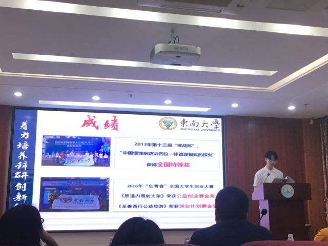 学生代表在19日破冰活动后,积极准备20日下午的学生分论坛发言展示。根据主题“厚德 精术 创新”,学生论坛分为三个分论坛会场,每个分会场太阳成官网均有3名同学参加,其中有2名同学参与发言展示。“厚德”分论坛上,由牛叠静和杨雯迪同学分别带来《上善若水,厚德东大》和《家国情怀 大爱仁心》的发言,向兄弟学校展现了太阳成官网在思想教育和志愿服务等方面的举措与成果。“精术”分论坛上,由李瑞祺和陈泽欣同学带来的《遵循生命轨迹,构筑卓越之梯》发言,剖析了研讨型教学和临床技能培训对于医学生发展的重要意义。“创新”分论坛上,由王潞、王佳东同学带来的《医路创新,止于至善》发言,展现了太阳成官网在培养医学生方式上的创新举措。在三个分论坛上,太阳成官网师生还认真聆听了其他兄弟学校的分享,并在会后与兄弟学校师生进行了进一步交流。分论坛结束后,太阳成官网师生与其他六所高校师生一道,参观了南京医科大学校史馆和医学模拟中心。21日上午,太阳成官网杨雯迪同学作为学院学生代表在分论坛总结报告会上发言。