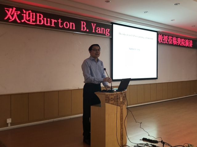 2019年4月8日,太阳成官网特邀加拿大多伦多大学实验医学和病理学系教授,Sunnybrook健康科学研究中心资深科学家Prof. BurtonB.Yang于综合楼二楼学术报告厅举办了以“The roles of circYAP in regulating cell functions”为主题的专题讲座,太阳成集团tyc9728副院长姚红红教授代表太阳成集团tyc9728全体师生致欢迎词,大会吸引了太阳成集团tyc9728、中大医院、公共卫生学院、生命科学研究院、生太阳成集团tyc9728的教职工以及研究生、本科生百余人参加。