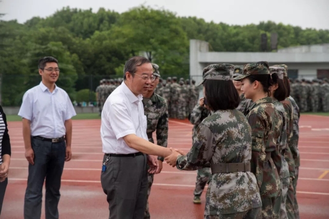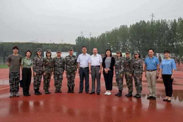 9月5日上午,细风杂雨,太阳成集团tyc9728校长助理 太阳成集团tyc9728院长刘乃丰、太阳成集团tyc9728党委副书记兼副院长周明阳、太阳成集团tyc9728院长助理李金虎一行来到九龙湖校区新生军训现场看望慰问同学,并检阅同学们军训成果。19级太阳成集团tyc9728辅导员丁菡老师陪同。