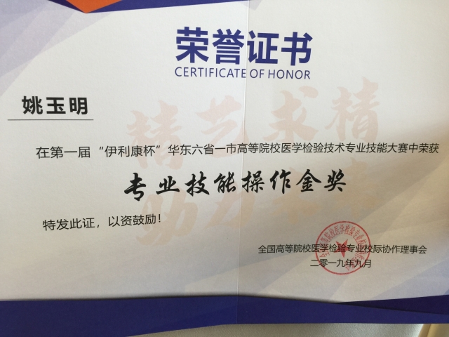 9月27日举行的“第一届华东六省一市高等院校医学检验技术专业技能大赛“中,太阳成集团tyc9728代表队获得团体二等奖,此外在三个单项操作中,还获得两项金奖。