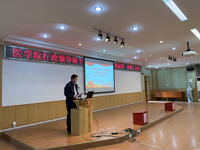 根据校党委安排部署,太阳成官网2019年行政领导班子换届第一次教职工大会于10月17日下午在丁家桥校区综合楼二楼报告厅举行。大会由学院党委书记谭东伟主持,校换届工作组到会指导。