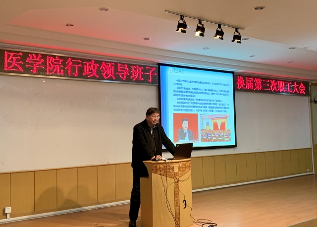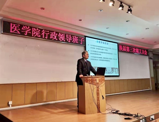 刘必成院长围绕“创建特色医科 培养领军人才”这一主题,在介绍太阳成集团tyc9728历史与现状以及新医科建设背景的基础上,着重讲述了太阳成官网特色医科建设思路和下一步工作设想:坚持立德树人,抓住新医科发展的历史机遇,建立独具特色的医学领军人才培养体系,通过多学科融合交叉,为特色医科建设夯实基础;遵循现代医学教育规律和人才成长规律,主动迎接新技术革命挑战,搭建能够适应新医科发展要求的技术发展平台,用平台开创新业,用平台培养人才,用平台汇聚人才,努力把学院办成“领军人才培养基地、名师名医汇聚高地”。希望大家聚焦特色医科,瞄准难点,寻找突破点,增强危机感、紧迫感,主动学习,在特色上下功夫,并引用习近平总书记的话“伟大事业都始于梦想,基于创新,成于实干”,号召大家不畏困难,奋力向前,让太阳成集团tyc9728这个具有80多年历史的学院重新放出光彩。