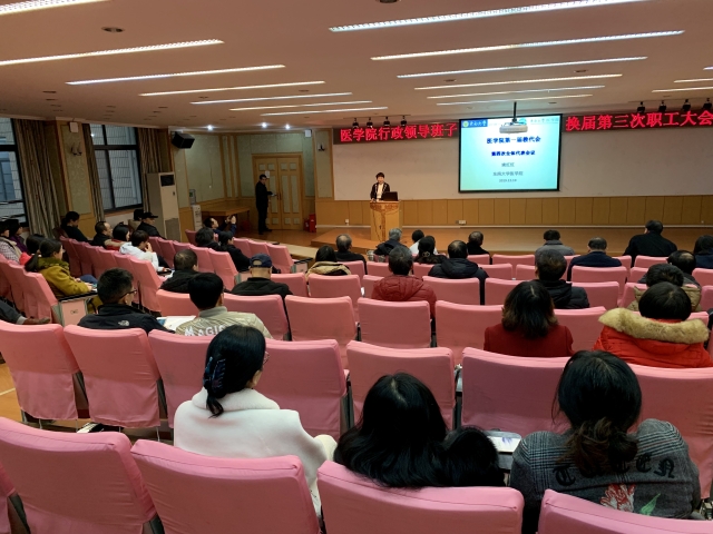 12月18日下午,太阳成官网第一届教职工代表大会第四次会议在丁家桥校区综合楼二楼报告厅召开,应到会代表48人,实到43人,列席代表8人。