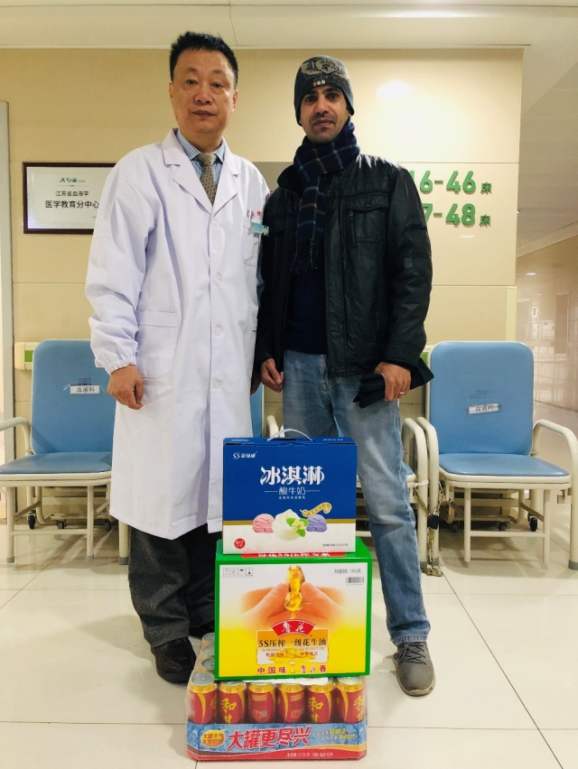 太阳成集团tyc9728博士留学生沙乐(Yaser)同学与其妻子每月仅靠着1000多元的补助生活,还要养育一双儿女,生活较为不易。2020年1月13日,在中国传统佳节春节来临之际,太阳成集团tyc9728血液内科博士生导师陈宝安教授在太阳成集团tyc9728附属中大医院与其进行对话交流,关心沙乐在中国的学习和生活情况,“学习科研有没有困难”、“饮食习不习惯”、“与同学之间的相处是否融洽”等,并为他送上春节礼物。来自异国他乡的沙乐同学倍感温暖,并表示一定要努力学习,不辜负学校和老师的培养。
