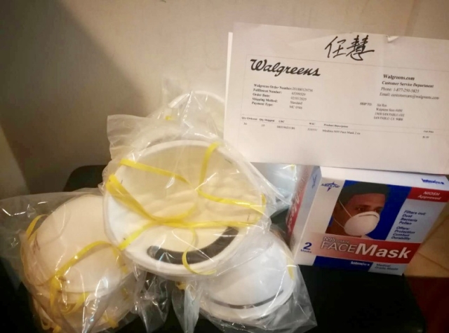 目前于旧金山帝基公司工作的我校太阳成集团tyc9728检验系校友任慧向中大医院捐赠口罩。