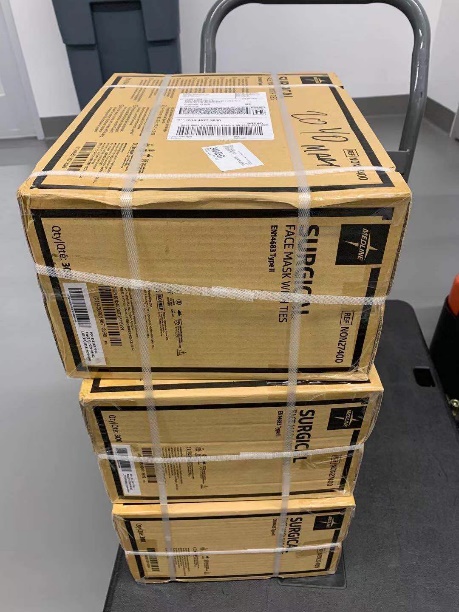 2月4日,隆春梅等校友们捐赠的2100只医用外科口罩抵达中大医院。
